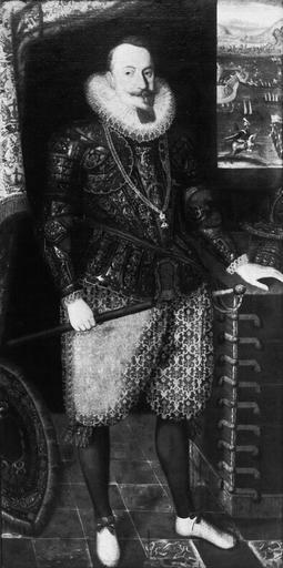 | Keywords: Sigismund III by Polish court painter.jpg Artwork unknown Poland Portrait of King Sigismund III Vasa Portret króla Zygmunta III Wazy Oil on canvas c 1610 cm 210 107 Institution Germanisches Nationalmuseum Gm 687 Portrait of monarch in the convention of rex armatus in a rich chiselled partially gilt and polychromed blue armor in the type of mezza armatura half armor This parade armor was probably made in Milan in the second half of the 16th century http //www bildindex de/ www bildindex de Copyright expired PD-Art other versions PD-old-100 17th-century unidentified court painters 1610c 17th-century portrait paintings in the Germanisches Nationalmuseum 1610c Portraits of Sigismund III of Poland Armours from the Polish Vasa Collection 1610s oil on canvas paintings Portrait 1610s portrait paintings Male 17th-century oil portraits of standing men at full length wearing armour 1610c Black and white reproductions of portrait paintings in color 1610c Collar of the Order of the Golden Fleece in portrait paintings 1610c Images from Bildarchiv Foto Marburg Male shoes in portrait paintings 1610c Portrait paintings of standing men with hands resting on tables 1610c Portrait paintings with Spanish composition Portraits holding baton 1610c |