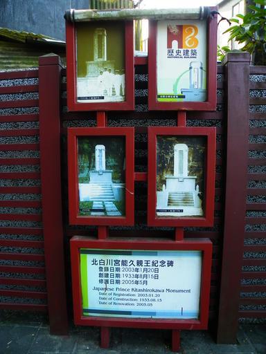 | Keywords: Sign of Prince Kitashirakawa Yoshihisa Monument 20140107.JPG zh-tw 北白 宮能久親王 念碑入口標誌 2014-01-07 15 07 59 Own 玄史生 Prince Kitashirakawa Yoshihisa Monument Keelung Signs in Keelung 玄史生写 文庫 Taken with Kodak EasyShare Z980 Uploaded with UploadWizard cc-zero |