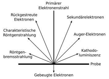 Keywords: Signale REM.svg Schematische Darstellung der Signale die im Rasterelektronenmikroskop REM entstehen und genutzt werden own based on Datei SignalREM jpg 2010-12 RobertMinFG Leyo Cc-zero Scanning electron microscope