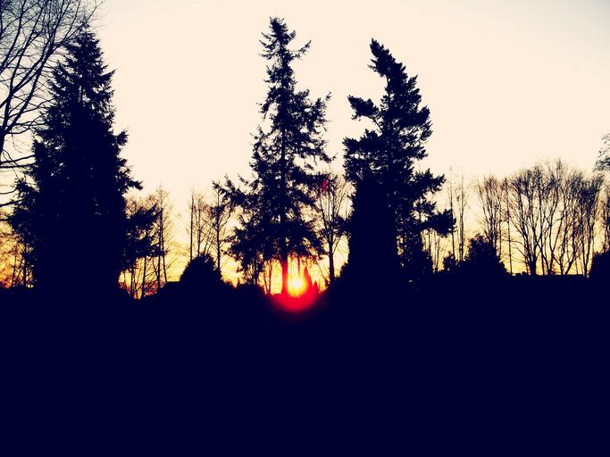 Keywords: silhouette nature landscape sun sunset abendstimmung mood aesthetic shadow back light trees branches light forest silhouette nature evening sky