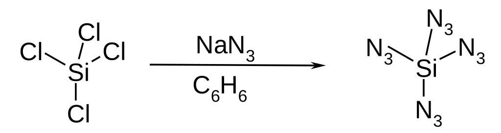 Keywords: Silicon tetraazide synthesis 02.svg en Synthesis of silicon tetraazide de Synthese von Siliziumtetraazid own Steffen 962 2010-11-30 PD-chem Cc-zero Silicon azides