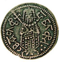 | Keywords: Silver coin of Theodore Svetoslav.png en Silver coin of Theodore Svetoslav 1300-1322 bg С ебъ на монета на ца Тодо Светослав 1300-1322 Исто ия на Бълга ия Том ІІІ Вто а бълга ска дъ жава издателство на БА София 1982 author century 14 PD-old Coins of Bulgaria Theodore Svetoslav of Bulgaria |