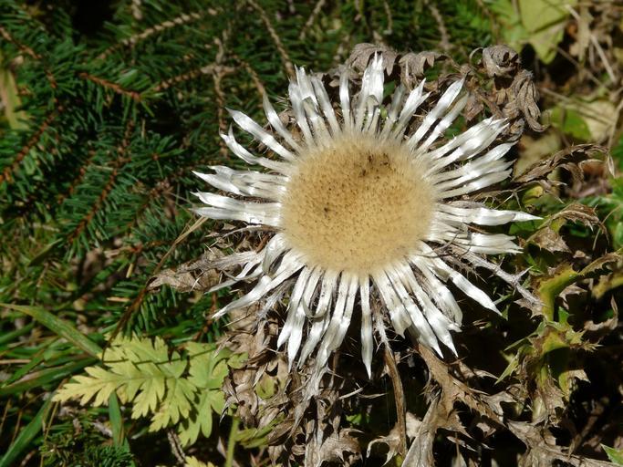 Keywords: silver thistle thistle carlina acaulis silver silvery weather thistle carlina flowering composites asteraceae