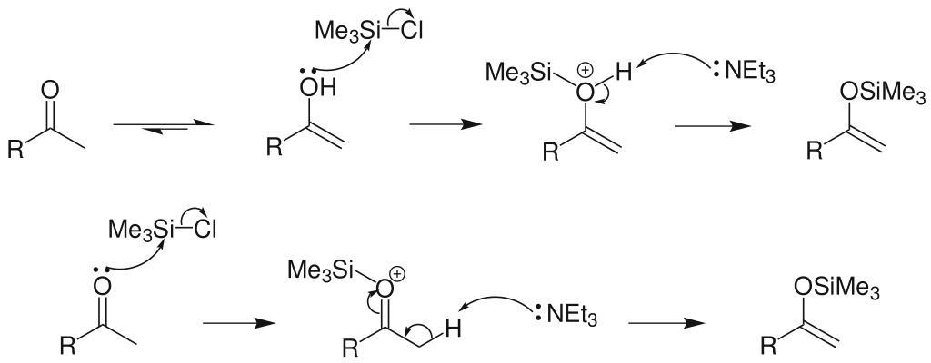 Keywords: SilylEnolEtherSynthesisMechanism.svg en mechanism for the formation of silyl enol ether from ketone own Choij 2009-08-01 Silyl enol ethers
