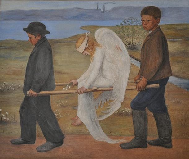 Keywords: Simberg, fresco The Wounded Angel.jpg en The Wounded Angel-fresco in Tampere cathedral http //www pyhaolavi fi/tuomiokirkko shtml Creator Hugo Simberg 1905-6 The Wounded Angel by Hugo Simberg PD-old
