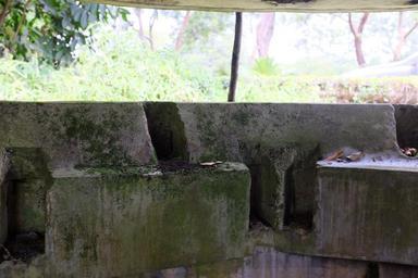 | Keywords: sime road pillbox machine gun british world war 2 wwii concrete 1942 interior japanese invasion singapore public domain publicdomain outdoor en.wikipedia.org/wiki/Pillbox_(military) Pillboxes are concrete dug-in guard posts, normally equipped with loopholes through which to fire weapons. The originally jocular name arose from their perceived similarity to the cylindrical and hexagonal boxes in which medical pills were once sold.[1] They are in effect a trench firing step hardened to protect against small-arms fire and grenades and raised to improve the field of fire. en.wikipedia.org/wiki/Pillbox_(military) Pillboxes are concrete dug-in guard posts, normally equipped with loopholes through which to fire weapons. The originally jocular name arose from their perceived similarity to the cylindrical and hexagonal boxes in which medical pills were once sold.[1] They are in effect a trench firing step hardened to protect against small-arms fire and grenades and raised to improve the field of fire. |