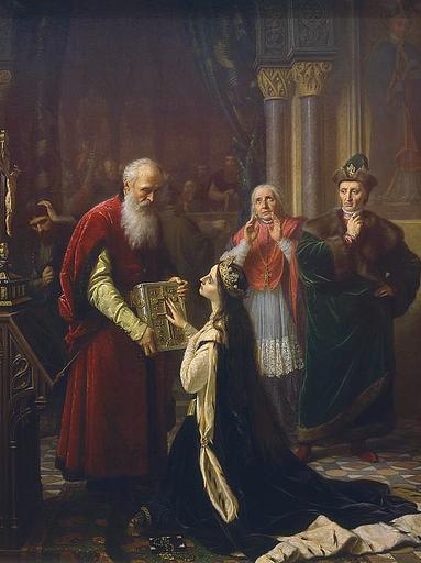| Keywords: Simmler Queen Jadwiga's oath.png  Artwork Creator Józef Simmler 1867 oil canvas cm 289 5 214 6 Institution National Museum Warsaw Not on view accession number MP 430 object history credit line J Simmler 1867 / Varsovie signature/date/location http //cyfrowe mnw art pl/dmuseion/docmetadata showContent true id 4793 cyfrowe mnw art pl See below PD-old-100 DEFAULTSORT 1867; Queen Jadwiga's oath Paintings by Józef Simmler in the National Museum in Warsaw Jadwiga of Poland Oaths in art Poland in history paintings Ermine clothing in art Male fur clothing in art Paintings by Józef Simmler with fur Sable clothing in art Sable caps in art |