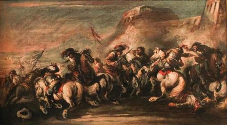 | Keywords: Simonini - Battle piece.jpg Artwork Creator Francesco Simonini Oil on canvas National Museum of Fine Arts La Valletta object history provenanceEvent 1960 purchase private collection Malta National Museum of Fine Arts Valletta credit line accession number item ID 112 own photo by Szilas in the National Museum of Fine Arts Valletta PD-old-100 Collections of the National Museum of Fine Arts Malta Francesco Simonini | ||||
