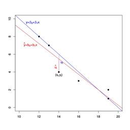 Keywords: SimpleLinearRegressionSketch2.svg en Shows a dataset and the true blue and estimated red regression line and for one observation x_i y_i hat y _i and the true residual U_i and the estimated residual hat u _i 2016-12-02 own Sigbert other versions cc-zero Scatterplots |