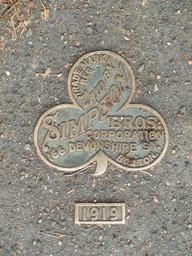 | Keywords: Simpson Bros sidewalk marker - Cambridge, MA - DSC00387.JPG en Sidewalk marker in Cambridge Massachusetts USA Text reads Laid by Simpson Bros Corporation / 166 Devonshire St / Boston / Trade Mark Reg / 1919 This image is in the public domain because first published before 1923 2011-11-27 own Daderot cc-zero Uploaded with UploadWizard Cambridge Massachusetts Sidewalks in Massachusetts | ||||