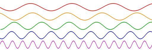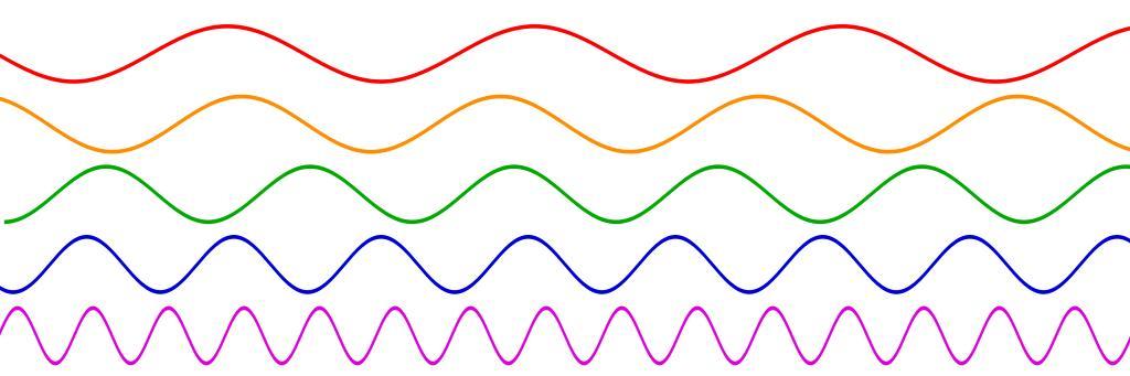 Keywords: Sine waves different frequencies.svg Sine waves of several frequencies Waves colored like the frequencies of the visible spectrum 2007-01-07 own assumed LucasVB Sine function Wavelength Periodicity Waves Transverse wave