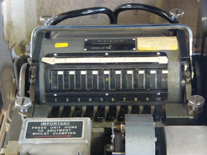 Keywords: Singlet-rotor-tube-front.jpg A Singlet machine BID/60 on display at Bletchley Park's Enigma and Friends exhibition in May 2005 a display put together by David White and John Alexander Matt Crypto Cipher machines
