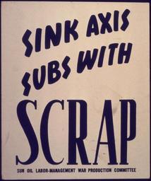 | Keywords: Sink Axis Subs With Scrap - NARA - 533956.jpg Scope and content General notes 533956 Local identifier 179-WP-98 Office for Emergency Management War Production Board 01/1942 - 11/03/1945 Still Picture Records Section Special Media Archives Services Division NWCS-S National Archives at College Park 8601 Adelphi Road College Park MD 20740-6001 other date circa 1942 1943 Record group Record Group 179 Records of the War Production Board 1918 - 1947 Record group ARC 508 War Production Board compiled 1942 - 1943 Series ARC 533858 File unit File unit ARC Variant control numbers NAIL Control Number NWDNS-179-WP-98 Other versions <gallery> File Sink_Axis_Subs_With_Scrap_-_NARA_-_533956 tif tif File Sink_Axis_Subs_With_Scrap_-_NARA_-_533956 jpg jpg </gallery> NARA-cooperation PD-USGov World War II posters from the United States Scrap metal drives Labor Management Committees |