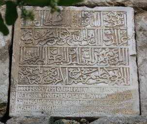 Keywords: Sinop bilingual inscription of Kaykaus I.jpg Sinop bilingual inscription of Kaykaus I Own 2007-07-02 Aramgar History of Sinop 1220 works Sultanate of Rûm Greek inscriptions in Turkey Arabic inscriptions in Turkey Archaeological multilingual inscriptions Bilingual media |