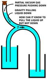 MAKE A MEME View Large Image SiphonWithTopBranch.svg A siphon with a branch off the top with some liquid and a little air in the top branch Demonstrates that there is no cohesion tension in a siphon at atmospheric pressure pulling the liquid up the up tube because if ...
