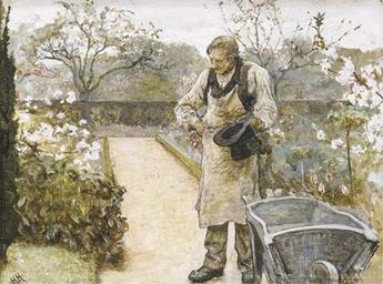 Keywords: Sir Hubert von Herkomer - The old gardener.jpg Artwork Creator Hubert von Herkomer pencil bodycolor gum arabic with scratching out in 6 8 object history C E Fry The Little Elms Watford about 18 2 ; with Spink-Leger London signed with initials 'HH' lower left signed again and inscribed 'No 2 'The old Gardener'/Hubert Herkomer/32 Smith St Kings Rd/Chelsea SW' and with a further inscription 'Foster Gardener II/C E Fry/The Little Elms/Watford about 18 2/Hants' on the artist's label attached to the backboard Christie's online 4009685 6643 89 London 21 November 2002 Other versions PD-old-auto-1923 1914 DEFAULTSORT Hubert von Herkomer - The old gardener Paintings by Hubert von Herkomer Paintings of men standing outdoors Paintings of gardens |