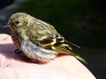 Keywords: siskin bird juvenile hand perched uk wildlife ornithology rescued
