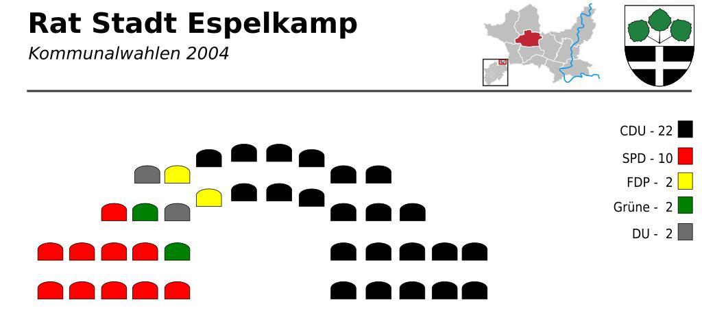 | Keywords: Sitzverteilung Rat Espelkamp 2004.svg Sitzverteilung im Rat von Espelkamp Wahlperiode 2004 own based partly on File Wappen Espelkamp svg by TUBS File Minden in MI svg by TUBS design based on de Benutzer DLiebisch/sitzverteilungen and Sitzverteilungsfigur svg by DLiebisch 2009-09 TUBS TUBS GFDL cc-by-3 0 2 5 2 0 1 0 cc-by-sa-3 0 2 5 2 0 1 0 TUBS/Credits Election apportionment diagrams of North Rhine-Westphalia Espelkamp Rat 2004 Statistics of Espelkamp Espelkamp 2004 Local elections in North Rhine-Westphalia 2004 Espelkamp Rat |