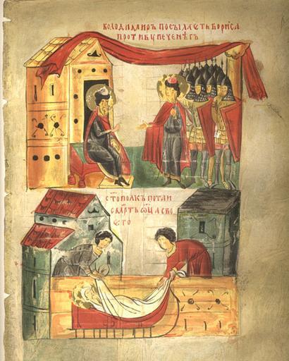 | Keywords: Skazanie o Borise i Glebe 02.jpeg Лицевые миниатю ы из «Сказания о Бо исе и Глебе» Сильвест овского сбо ника XIV века «Сказание о Бо исе и Глебе» Лицевые миниатю ы из Сильвест овского сбо ника XIV века 1 Князь Владими посылает Бо иса п отив печенегов 2 Сме ть князя Владими а http //historydoc edu ru/catalog asp ob_no 12998 cat_ob_no 14 anonimous PD-old-100 Tale of Boris and Gleb | ||||
