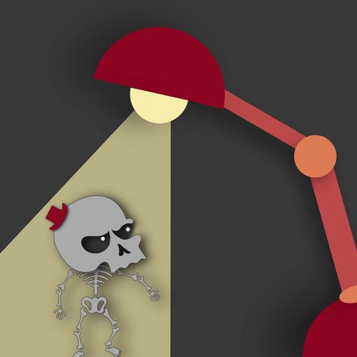 Keywords: skeleton lamp light vector illustration night dark skull cartoon funny small creativity flat design glow hat dead glare tiny bulb electric design strange surreal shadow spotlight stage
