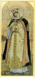 | Keywords: Sketch for S.Olga by M.Nesterov (1892, Kiev museum of Russian art).jpg Святая Ольга 1892 Эскиз для осписи Владими ского собо а в Киеве Бумага аква ель г афитный ка андаш золото белила 33 x 14 см Киевский национальный музей усского искусства Ук аина Инв номе Рг-1103 http //www art-catalog ru/picture php id_picture 21479 1892 M Nesterov Saint Olga Nesterov Files uploaded by Shakko from various sources PD-old | ||||