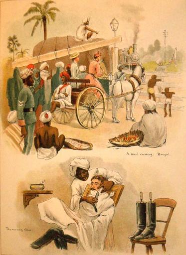 Keywords: Sketches4.jpg en Lloyd's Sketches of Indian Life London 1890 chromolithographs enhanced with gum arabic Arrival in Bombay native women-- visions of Lalla Rookh waking in the morning street scene Central India revenge for noise donkey-riders soldiers croquet dust-sprinkling at the club The Alligator's Dinner Hour Camping Himalayas families hunting porters various sketches 1 various sketches 2 various sketches 3 various sketches 4 Source ebay Aug 2005 1890 http //www columbia edu/itc/mealac/pritchett/00routesdata/1800_1899/dailylife_drawings/lloyd1890/lloyd1890 html Lloyd's Sketches PD-Art Uploaded with UploadWizard W Lloyd 'Lloyd's Sketches of Indian Life' London Chapman Hall 1890 |