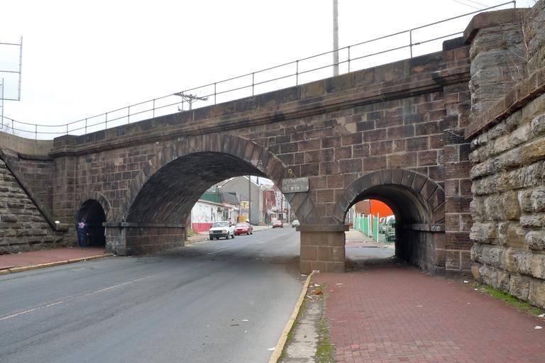 Keywords: Skew Bridge.JPG 73001590 Reading Pennsylvania According to the PHMC state historical marker not visible it was designed by Richard Osborne in 1857 for the P R Reading Railroad Each course of the 40 foot arch is ellipsoidal and the stones are properly curved to accommodate the skew There is no keystone own Smallbones 2011-03-29 40 20 37 N 75 55 34 W Cc-zero National Register of Historic Places in Berks County Pennsylvania Reading Railroad bridges Bridges on the National Register of Historic Places in Pennsylvania Stone arch railway bridges in Pennsylvania Buildings and structures in Reading Pennsylvania Bridges in Berks County Pennsylvania Skew arch bridges |