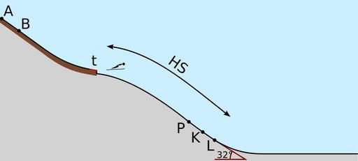 | Keywords: Ski jumping hill profile.svg fr <br /> A point supérieur du départ<br /> B point inférieur du départ<br /> t table<br /> P début de la zone d ™atterrissage<br /> K point de construction<br /> L fin de la zone d ™atterrissage<br /> HS taille du tremplin hill size 2013-03-23 17 55 58 own Florn88 cc-zero Uploaded with UploadWizard Ski jumping hills |