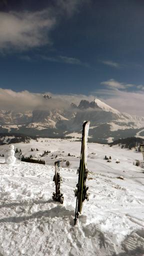 Keywords: skis skiing snow ortisei winter sport mountain alps alpine slope outdoor downhill skier vacation cold white