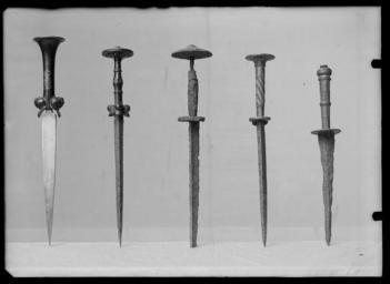 Keywords: Skivdolk - Livrustkammaren - 77366.tif Sammansatt av ursprungligen ej samhörande delar Klingan sannolikt från sen medeltid Kavel av sengotisk typ Knapp och parerplåt sentida 1830-50 Monteringen av de olika delarna till av allt att döma utförd under sistnämnda tid Fäste av mässing Knapp pålödd kaveln och av rund vertikalt hoptryckt form utmed mitten bård hålkäl Nitknappen som är platt och med ojämnt flersidig kontur utgör huvudet till en i knappen inskruvad kort skruv Kavel koniskt avsmalnande mot klingbasen Rund överdelens mitt och nederdel en snedräfflad ring Mellan dessa ett yttäckande mönster av stående rektangulära fält med rut- och kryssmönster i låg relief och med spår av påhamrat silver Parerplåt slät rundat skivformig och vågrät utskjutande på vapnets utsida utmed kanten bård av runda hål Parerplåtens insida liten bredd 18mm rakt nedåtböjd och formad som en palmett Klinga tvåeggad illa medfaren och täckt av gravrost Eggsidorna ojämna mycket skadade Jordfynd original caption skivdolk - LRK 17153 ca other date - 1400 1850 brass b1 - blankvapen - fäste material mässing - silver b4 - blankvapen - fästdekor material silver size mm 272 size mm 45 size mm 168 klinga size mm 25 klinga g 190 LRK Alexander E C G von Post Kapten 1843-1899 Stora Djulö Sverige place of origin original filename LN_B00339_003219 52444 inventory number LRK 17154 77366 CC0 Skivdolk - Livrustkammaren - 77366-negative tif <gallery caption Different images of same object > File Dolk sammansatt - Livrustkammaren - 17594 tif </gallery> Knife images from Livrustkammaren Media contributed by LSH dim-with multiple size templates Dagger images from Livrustkammaren Media contributed by LSH 2013-10 |