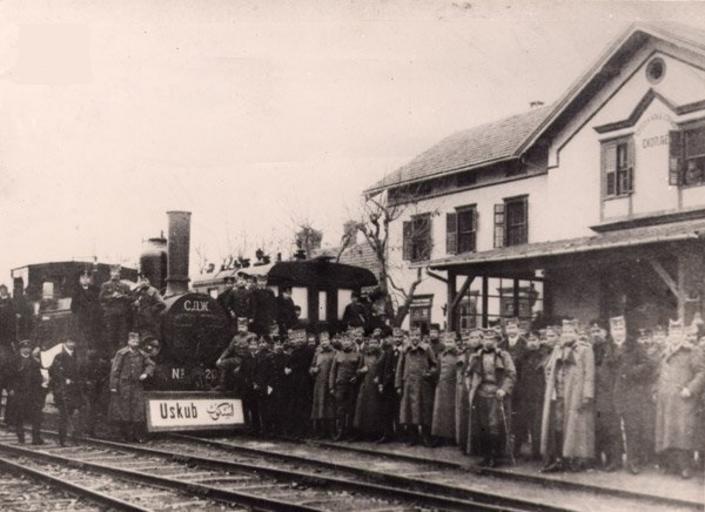 Keywords: Skopie Station circa 1912.jpg Ка тичка от Скопие п и смяната на табелата на г ада от османската със с ъбска scanned 1912 author PD-old Postcards of Skopje