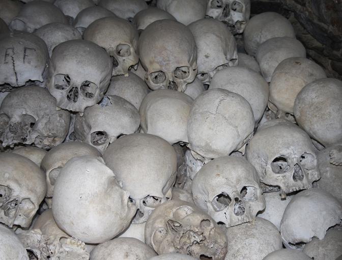 Keywords: skull skull and crossbones mortal church crypt bones ossuary arvigo calancatal graubünden switzerland southern switzerland