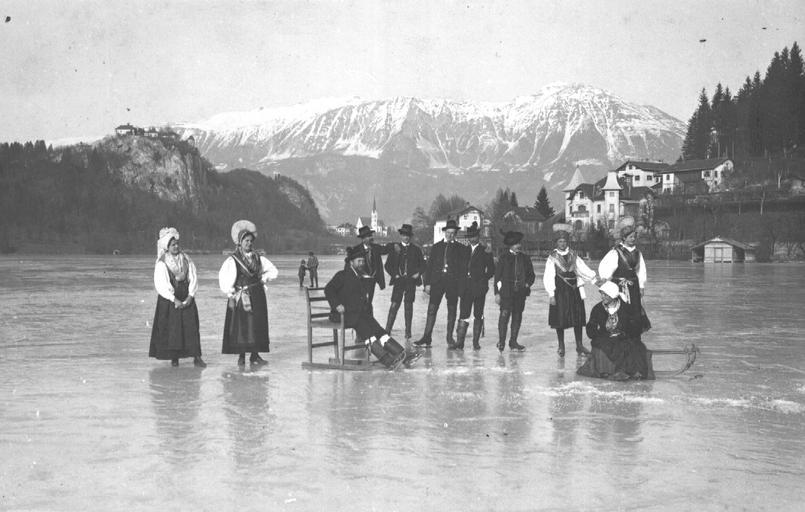 | Keywords: Skupina ljudi v gorenjski narodni noši na drsalkah, pozira na zamrznjenem Blejskem jezeru 1910-25.jpg Skupina ljudi v gorenjski narodni noši na drsalkah pozira na zamrznjenem Blejskem jezeru kostumiranje-in-uniformiranje-narodna-nosa-uniforme/semn-0001460 9ZQ3MRJZ Creator Fran Vesel between 1909 1914 1944 Photographs by Fran Vesel Traditional costumes of Slovenia Frozen Lake Bled Transport in Bled Group photographs in Slovenia Sleds in Slovenia Historical images of Bled Castle Historical images of Bled Castle with Lake Bled in the foreground Historical images of the Karawanks Historical images of St Martin's Parish Church Bled Water reflections in Bled Ice skating in Slovenia Water reflections of land vehicles Water reflections of people in Slovenia |