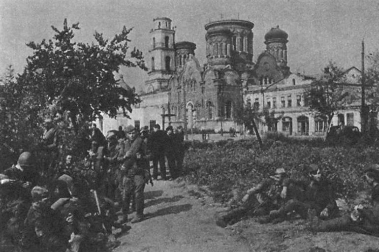 | Keywords: Skver tankistov1943.jpg  en Soviet soldiers resting in Pervomayskaya Square now Tankers square ru Советские солдаты на п ивале на Пе вомайской площади ныне Скве Танкистов photo from newspaper author 1943-08-05 Oryol during World War II Church of the Protection of the Theotokos Oryol PD-Ukraine 1940s |