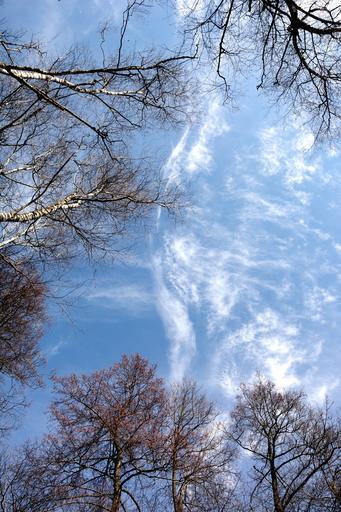 Keywords: sky blue canopy trees blue sky cloud freedom infinite cloud formation view wide cloud formations