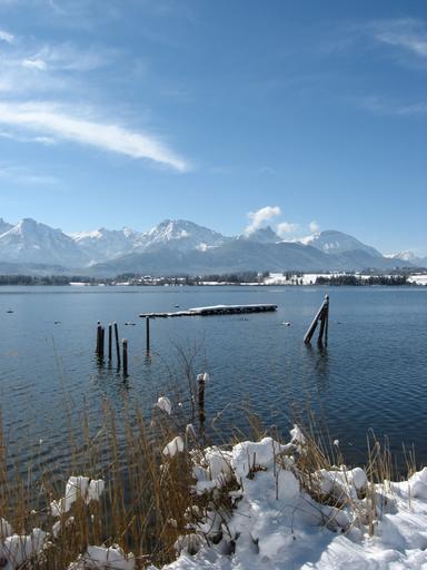 Keywords: sky blue cloud romance snow clouds beautiful water lake winter mountains allgäu alpine allgäu alps mountain calendar image postkartenmotiv imposing impressive