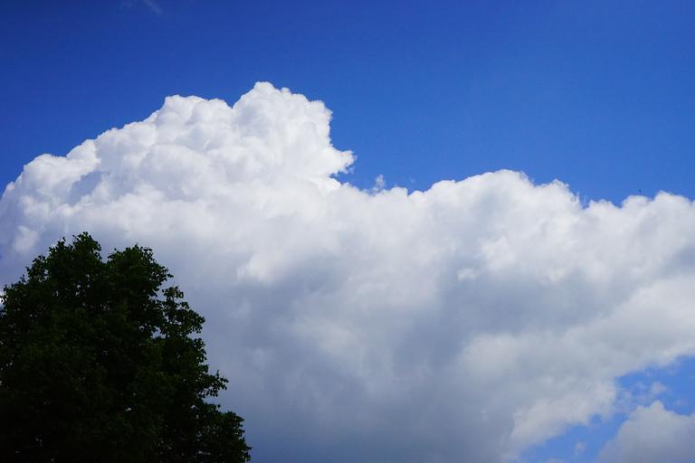 Keywords: sky blue clouds white tree nature landscape cumulus clouds