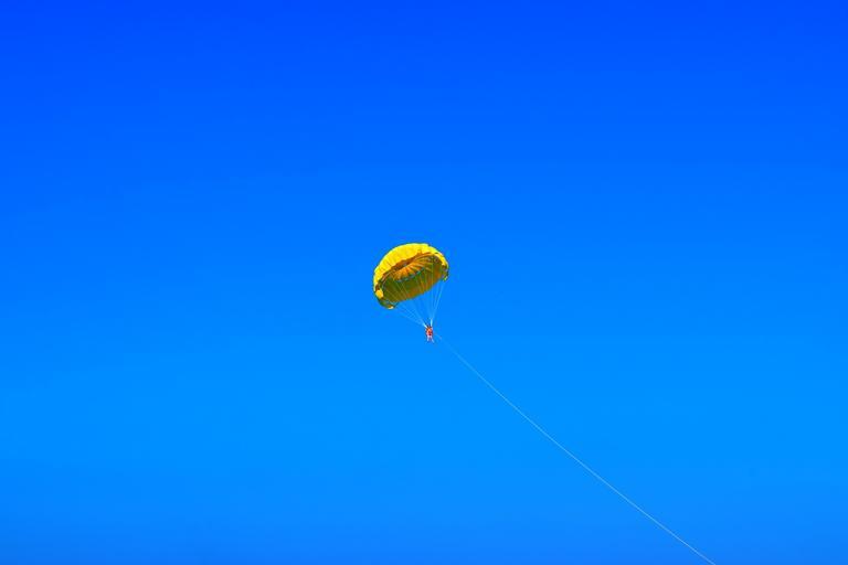 Keywords: sky blue parachute yellow