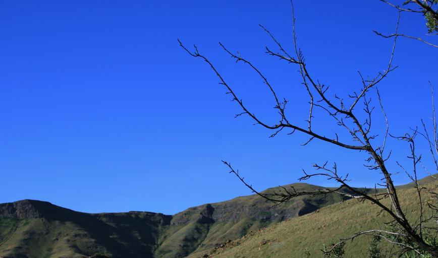 Keywords: sky bright clear pure blue mountain tops slopes dry branches