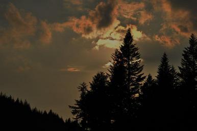 Keywords: sky clouds sunset tree forest spruce evening