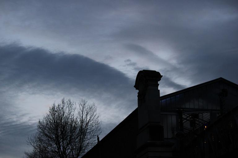 Keywords: sky fall trees roof house