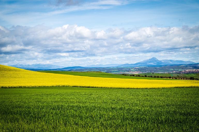 Keywords: sky field blue sky clouds landscape cultivation agriculture spring
