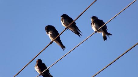 Keywords: sky nature birds sparrow wire blue sky