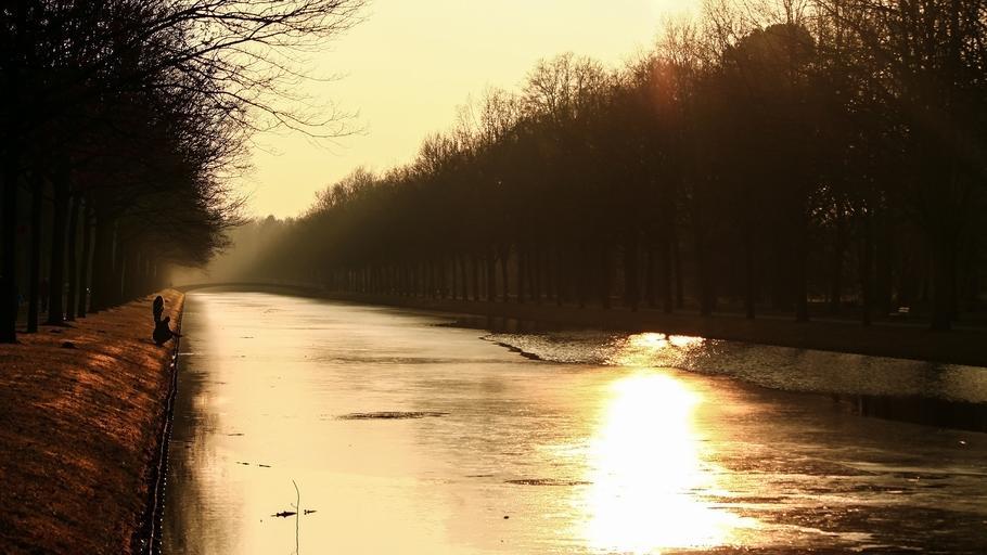Keywords: sky sun water sunset tree rays evening sky perspective twilight dark evening nature dusk forest light landscape atmosphere mood atmospheric rest gloss ice winter river kassel orangery