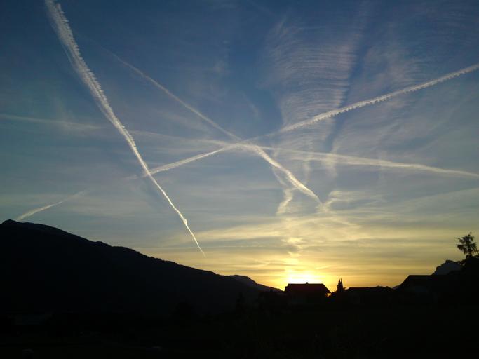 Keywords: sky sunset evening sky clouds contrail dusk sun mountains abendstimmung romance sonnenunetrgang romantic