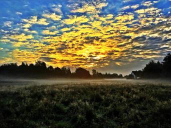 Keywords: skyline sky germany blue clouds fog morning mood yellow autumn morning sun scene morning mist morning hour dawn nature sun sunrise