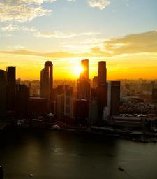 Keywords: skyline sunset buildings cityscape urban city downtown dusk sunrise dawn singapore horizon sky orange blue water waterfront skyscrapers