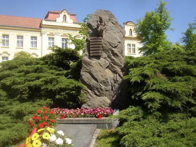 | Keywords: Slany CZ memorial of Nazi victims 124.jpg  Pomník obětem nacistické okupace 1939-1945 na Hlaváčkově náměstí ve Slaném okres Kladno Memorial to victims of Nazi occupation 1939-45 in Hlaváček Square in town of Slaný Kladno District Czech Republic 50 13 59 1 N 14 05 12 1 E type landmark_region CZ <br> <center> 0 style text-align center; background b2beb5; color black cellpadding 5 cellspacing 0 - 3 style background aa98a9  - background aa98a9 background bc987e OSVĚTIM background aa98a9 - background aa98a9 background bc987e DACHAU background aa98a9 - background aa98a9 background bc987e BUCHENWALD background aa98a9 - background aa98a9 background bc987e MAUTHAUSEN background aa98a9 - background aa98a9 background bc987e RAWENSBR CK background aa98a9 - background aa98a9 background bc987e TEREZÍN background aa98a9 - background aa98a9 background bc987e PANKRÁC background aa98a9 - 3 style background aa98a9  - 3 style background aa98a9  - 3 style background aa98a9  - 3 style background aa98a9  - 3 NA VĚČNOU PAMĚŤ POPRAVEN M A UMUČEN M 1939  1945 - ANDRÁŠEK VÁCLAV HYBŠ RUDOLF NEUMANOVÁ JULIE - BECKOVÁ KAROLINA HYBŠOVÁ ALBÍNA NEUMANOVÁ MILOSLAVA - BENEŠOVÁ ANNA HYBŠ EDUARD OPLT STANISLAV - BENEŠ ARTUR HYBŠ PAVEL PENÍŽEK FERDINAND - BENEŠ JOSEF CHADALÍK EMIL POKORN ALOIS - BENEŠ JOSEF KAPALÍN KAREL JUDR POPPER EGON - MUDR BENEŠ KAREL KERNER KAREL POPPER HUGO - BENEŠ MOŘIC KLÁN OTTA POPPEROVÁ ELSA - JUDR BENEŠ OTA KLAUS JOSEF PRESSER EGON - BENEŠ VLADIMÍR KOLÁŘ FRANTIŠEK PRESSER FRANTIŠEK - BUREŠ VÁCLAV KORCOVÁ BERTA PRESSER OTA - ČERVENKA VÁCLAV KOREC KAREL PRESSEROVÁ ROSÁLIE - ČÍŽEK JOSEF KORCOVÁ MARTA JUDR PUGNAR JAN - DUFEK SYLVESTR 2 DĚTI KORCOV CH PUGNAROVÁ ELIŠKA - ECKSTEIN JOSEF KRAUS RAINHOLD RŮŽIČKA JAROSLAV - ECKSTEINOVÁ ELSA KOTMEL JOSEF SAINER KAREL - ELZNIC JIŘÍ KUBÍČEK VÁCLAV SMETANA OLDŘICH - ELZNIC JOSEF LÍSKOVEC MILOSLAV SUŠÁNEK JOSEF - EPSTEINOVÁ LUISA LEKNER EMIL SVÍTEK ZDENĚK - FANTA RICHARD LEKNEROVÁ AMÍLIE SVOBODA JOSEF - FANTOVÁ HANA LÖWY ARNOŠT SVOBODOVÁ ALOISIE - FELDMAN OSKAR LÖWY OTTA SVOBODOVÁ IRENA - FIŠER JOSEF LÖWYOVÁ ANNA ŠEBESTA VÁCLAV - FLEISCHNEROVÁ JOSEFA 2 DĚTI LÖWYOV CH ŠMÍDL VÁCLAV - MUC FORMÁNEK JAN LÖWYOVÁ ARNOŠTKA ŠTROBL ALOIS - FORMÁNEK KAREL MACEK BOHUSLAV TUŠER FRANTIŠEK - FREUNDOVÁ-FANTOVÁ VĚRA MALEC ANTONÍN URIE JOSEF - JUDR HAKEN MIROSLAV MAŘÍK JOSEF VACEK JAROSLAV - HAMPEJS VÁCLAV JUC MAŠEK BOHUMIL VIDIMSK FERDINAND - HARMÁČEK JOSEF MICHÁLEK BOHUMIL WEISSOVÁ ANNA - HLINOVSK LADISLAV MÍŠEK VÁCLAV WINTERNITZ JOSEF - HOLEČEK JOSEF NÁHLOVSK VÁCLAV WINTERNITZ LUDVÍK - HOL ŠTĚPÁN NEUMAN VIKTOR WINTERNITZOVÁ ANNA - HRUB BORIS ING NEUMAN VLADIMÍR ŽÍDEK VILÉM - NEUMANOVÁ JIŘINA - 3 SVAZ PROTIFAŠISTICK CH BOJOVNÍKů SLAN 1965 </center> <br> Monuments and memorials in Slaný World War II memorials in Kladno District Hlaváčkovo náměstí Slaný  |