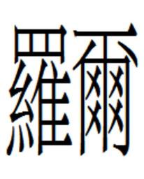 | Keywords: Slavonic Chinese transcription character luo-er.png en Chinese character used in the Slavonic transliteration of Biblical names Scheduled for inclusion in Unicode 10 0 at U+9FE1 Image extracted from the BabelStone Han font 2016-05-14 own BabelStone other versions cc-zero Chinese characters used for Slavonic transliteration |