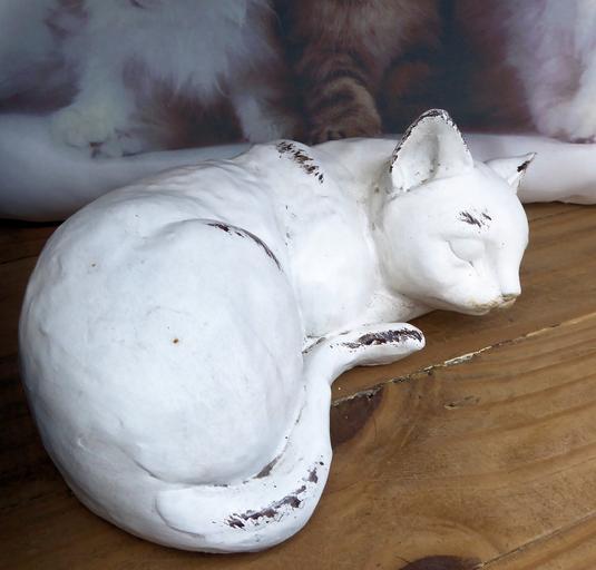 Keywords: sleeping cat painted clay outdoors garden ornament